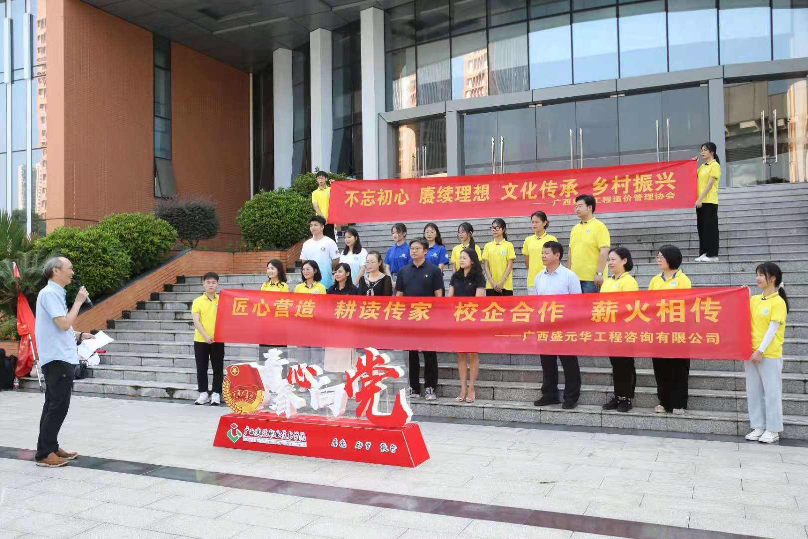 黃藝副總經(jīng)理在出征儀式上講話 據(jù)悉,我公司去年與廣西建設(shè)職業(yè)技術(shù)學(xué)院校企合作的“三下鄉(xiāng)”社會(huì)實(shí)踐活動(dòng)收到了良好的社會(huì)效果。再次出征啟程,依托學(xué)?!叭恕笔痉断灯脚_(tái),“雙高”院校建設(shè)工程管理專業(yè)群建設(shè),融合互聯(lián)網(wǎng)+項(xiàng)目打造,由廣西建設(shè)職業(yè)技術(shù)學(xué)院管理工程系、馬克思主義學(xué)院聯(lián)手組織,得到我公司與廣西建設(shè)工程造價(jià)管理協(xié)會(huì)全程指導(dǎo),既加強(qiáng)了校企合作聯(lián)系,又體現(xiàn)了行業(yè)企業(yè)的社會(huì)擔(dān)當(dāng),更借助實(shí)踐檢驗(yàn)育人實(shí)效,實(shí)現(xiàn)了學(xué)校、行業(yè)、企業(yè)“三線交融”,匯聚校行企力量,助力鄉(xiāng)村振興。